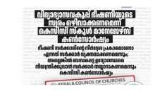വിദ്യാഭ്യാസവകുപ്പ് ഭീഷണിയുടെ സ്വരം ഒഴിവാക്കണം: കെ.സി.സി. സ്കൂള് മാനേജേഴ്സ് കണ്സോര്ഷ്യം