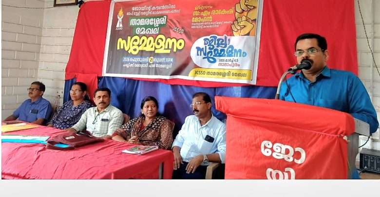 താമരശ്ശേരി പബ്ലിക് ലൈബ്രറി ഹാളിൽ നടന്ന മേഖല സമ്മേളനം ജോയിന്റ് കൗൺസിൽ സംസ്ഥാന സെക്രട്ടറിയേറ്റ് അംഗം എം രാകേഷ് മോഹൻ ഉദ്ഘാടനം ചെയ്തു. സമ്മേളനത്തിൽ മേഖലാ പ്രസിഡന്റ് വിനോദ് ജോർജ് അധ്യക്ഷത വഹിച്ചു. ജില്ലാ സെക്രട്ടറി പി. സുനിൽ കുമാർ സംഘടനാ റിപ്പോർട്ടും മേഖല ജോയിന്റ് സെക്രട്ടറി ധന്യ സി. പ്രവർത്തന റിപ്പോർട്ടും മേഖലാ ട്രഷറർ അരുൺ കുമാർ വരവ് ചെലവ് കണക്കും അവതരിപ്പിച്ചു.