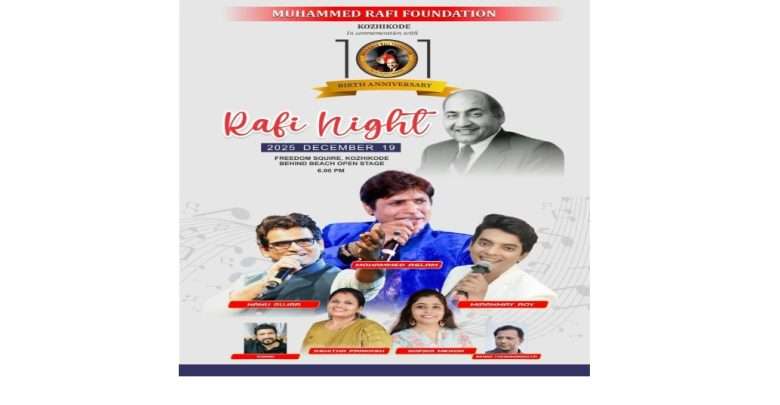 കോഴിക്കോട് :..മൂന്ന് ബോളിവുഡ്ഡ് ഗായകാരായ,, മുഹമ്മദ് അസ്ലം, നാനു ഗുർജാർ, മിരൻ മെയ് റോയ്, എന്നിവരോടൊപ്പം, പ്രശസ്ത ഗായികമാരായ ആശിതാ പ്രകാശ്, ഗോപിക മേനോൻ എന്നിവർ അണിനിരക്കുന്ന, മെഗാ റഫിനൈറ്റ്, മുഹമ്മദ് റഫി ഫൗണ്ടേഷൻ ഡിസംബർ 19 ന്, വൈ.6 മണിക്ക് കോഴിക്കോട് ബീച്ച് ഫ്രീഡo സ്ക്വയറിൽ സംഘടിപ്പിക്കുന്നു. എല്ലാ സംഗീത ആസ്വാദകരെയും, സ്വാഗതം ചെയ്യുന്നതായി സംഘാടകർ അറിയിച്ചു.