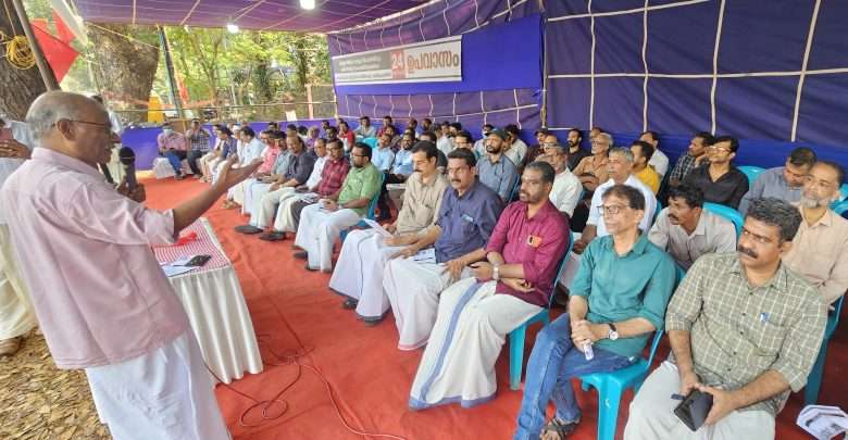 കെ.എൻ.ഇ.എഫ് സംസ്ഥാന ജന. സെക്രട്ടറി ജയ്സൺ മാത്യു അധ്യക്ഷത വഹിച്ചു. കെ.യു.ഡബ്ല്യു.ജെ സംസ്ഥാന ജന. സെക്രട്ടറി സുരേഷ് എടപ്പാൾ സമര വിശദീകരണം നടത്തി. ഐ.എൻ.ടി.യു.സി ജില്ലാ പ്രസിഡൻ്റ് കെ. രാജീവ് മുഖ്യ പ്രഭാഷണം നടത്തി.